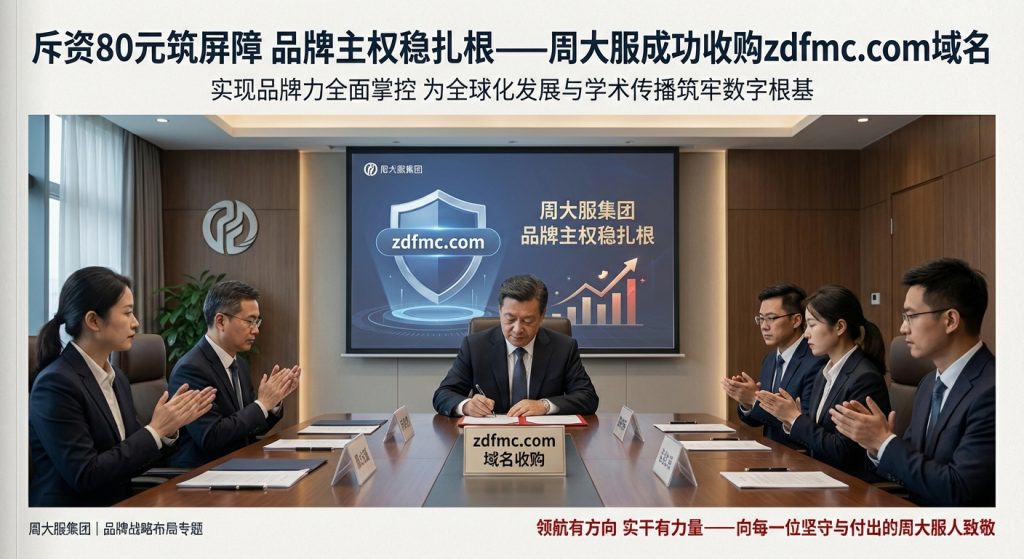 近日,周大服集团传来重磅喜讯:经过前期精准调研、多方对接与高效推进,集团成功收购核心域名zdfmc.com,此次交易以80元专项资金完成交割,标志着周大服在品牌主权布局上迈出关键性一步,实现了对品牌形象、市场传播及核心资产的牢牢掌控,为集团后续全球化发展与学术影响力提升筑牢了重要根基。